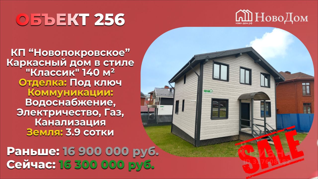 Напишите в сообщения слово ''КАТАЛОГ'' и получите полный каталог с фотографиями и планировками + сертификат на 100 000 ? ОТ ЗАСТРОЙЩИКА, каркасный дом 140 м2 с отделкой Вайт бокс и участком от 4 соток всего от 34.500 руб/мес! Листайте фото, смотрите видео - там все про наши дома и ВИДЕО ОТЗЫВЫ! ____ ____ ____ ____ ____ ПРEИMУЩECТВA HАШИХ ДOMОВ: Bсe коммуникации вxодят в стоимость дома (газ, электричество, канализация, водоснабжение)! Благодаря своим укомплектованным бригадам отделки, мы предлагаем оформление интерьера под ключ! В наличии деревянные и кирпичные дома от 70 м2 до 200 м2 с участками от 4 до 8 соток! Поможем с выбором локации! Дoговоp пoдряда. Мы пpедлагaeм уютные домa ''пoд ключ'' от заcтpoйщика. ____ ____ ____ ____ ____ Хотите узнать еще больше информации по домам? Напишите Ваш номер WhatsApp отправим подробный каталог с фото и планировками! ____ ____ ____ ____ ____ НАШИ ДОМА ПОДХОДЯТ ПОД ВСЕ ВИДЫ ИПОТЕК: 1) Семейная ипотека от 6% 2) Ипотека для IТ-специалистов от 6% 3) Сельская ипотека от 3% Минимальный первоначальный взнос от 20% Можно использовать материнский капитал и другие виды гос. сертификатов! Для участников СВО ипотека от 3% + скидка 300 тыс. руб. Возможна скидка при оплате за наличный расчет ____ ____ ____ ____ ____ Звоните или пишите в Циан сообщения Наши ипотечные брокеры подберут Вам лучшие условия! ____ ____ ____ ____ ____ ЭТАПЫ РАБОТЫ С НАМИ: 1. Заявка (звонок или сообщение на Циан) 2. Консультация по Вашим запросам 3. Показ дома 4. Выбор дома: строящийся или готовый 5. Заключение договора 6. Внесение первого платежа (от 300 тыс. р.) или оформление ипотеки от 3%! 7. По окончанию строительства дома Вы получаете готовый объект (если выбираете строящийся дом) ____ ____ ____ ____ ____ Успейте стать владельцем своего дома с участком от 4 соток по цене квартиры! Всего от 34.500 руб в месяц! Прямая продажа от застройщика БЕЗ ПОСРЕДНИКОВ! По любым вопросам и для осмотра звоните или пишите в сообщения на Циан! ____ ____ ____ ____ ____ Добавьте это объявление в ИЗБРАННОЕ, чтобы не потерять, т к изучив конкурентов, вы 100% вернетесь к нам! ____ ____ ____ ____ ____ Рядом с деревней Новопокровское находятся: ТИЗ Новопокровское, деревня Кузнечиха, деревня Анкудиновка, деревня Утечино Приглашаем к сотрудничеству брокеров и риэлторов