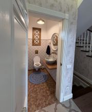 2-х этажный коттедж расположен на земельном участке 500 кв.м. по адресу: Нижегородская область, Балахнинский район, РП Большое Козино, ул Сосновая дом 1 а. Адрес точный и есть на картах, посмотреть место (снаружи дом) можете сами в любое времяУлица не проездная, большого трафика нет, дети спокойно гуляютЕсли вас интересуют другое местоположение дома и площадь, уточняйте в профиле или позвонив.Площадь дома по выписке ЕГРН: 136,6 м2, из них отапливаемой площади 125,8 м2, плюс навес, балкон и крыльцоУчасток сухой, высокий вне охранных зон высоковольтных проводов, зона ИЖС.На первом этаже, высота потолков 3 м, кухня-гостинная 32 м2, гостевая комната 10 м2, туалет 5 м2, прихожая 8 м2Второй этаж, высота потолков 2,7 м. три комнаты 15 м2, 14 м2 и 13 м2, балкон, ванная 8 м2 и гардероб 6 м2.Навес 40 м2Крыльцо 6 м2Внутренние: газ, септик, каменный забор с откатными воротами, Электромонтажные, слаботочные работы, водопровод, канализация, отопление, стяжка, штукатурка,Выполнена система умный дом на отопление с терморегулятором и на станцию водяную, установлено видеонаблюдение. Доступ ко всем системам дома через теелфон из любой точки мира.Дополнительно возможно устройство задней веранды с балконом (проект готов)Описание основных строительных материалов:Фундамент: монолитная лента на глубину промерзания с армированием металл. арматурой,Наружные стены толщиной 50 см Кирпич керамический с утеплением мин ватой 100 мм и несущая стена из силикатного кирпича, перегородки кирпичМеждуэтажные перекрытия монолитные.Междуэтажная лестница: бетонКровля: Гибкая двухслойная черепица, холодный чердак.Инженерные коммуникации: Газ заведен в кухню, котел аксиальный, теплые полы первый этаж полностью и второй ванная комнатаВентиляционная система с кухни, ванны и санузловЭлектричество договор с ТНС энергоСкважина на воду вне дома в отдельном колодце Охранная сигнализация вневедомственная охрана.Септик из ж/б колодцев 1,5 мХорошее местоположение, в пешей доступности лес, школа, магазины, автобусная остановка, железнодорожная станцияВ доме никто не жил, никто не прописан.Чистая продажа. Документы на руках. Про условия ипотеки, в том числе и сельской спрашивайте у банков