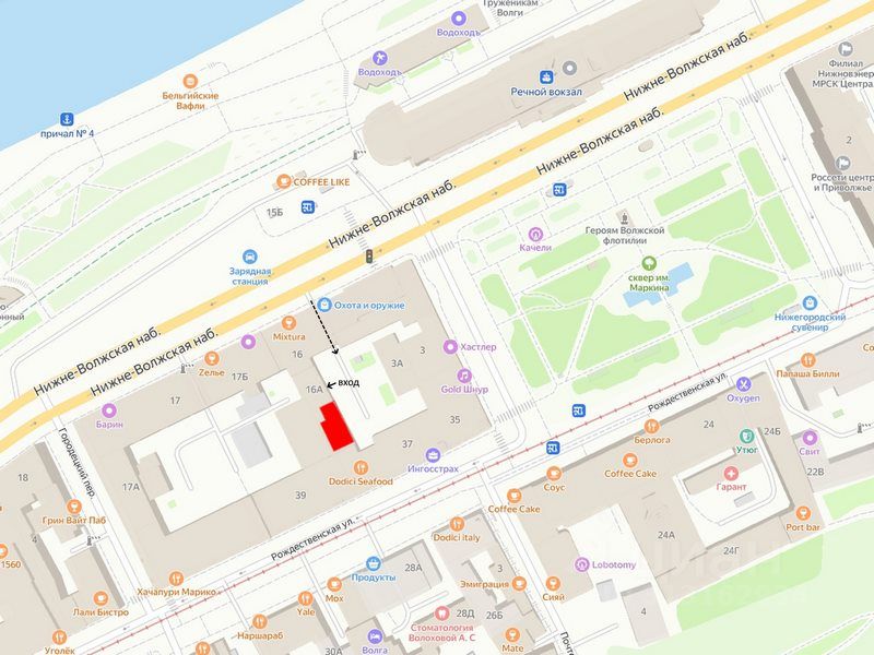 ''Аренда офиса. Нижегородский район. Нижне-Волжская набережная. Офис общей площадью 104.7 кв.м. Расположен на 1-ом этаже административного здания. Вторая линия домов по Нижне-Волжской набережной. Проезд к зданию через арку. На входе в здание расположен пункт охраны. По планировке офис состоит из трех кабинетов: 28,7 кв.м., 45.1 кв.м., 10,9 кв.м. и помещения без окон 20.0 кв.м., которое используется как склад. В офис сделан хороший ремонт. Все комнаты с большими окнами. Санузел на этаже. Высота потолка 2.77 метра. Сдается от юр.лица. Ставка аренды без НДС. Парковка перед зданием.'', N 105667