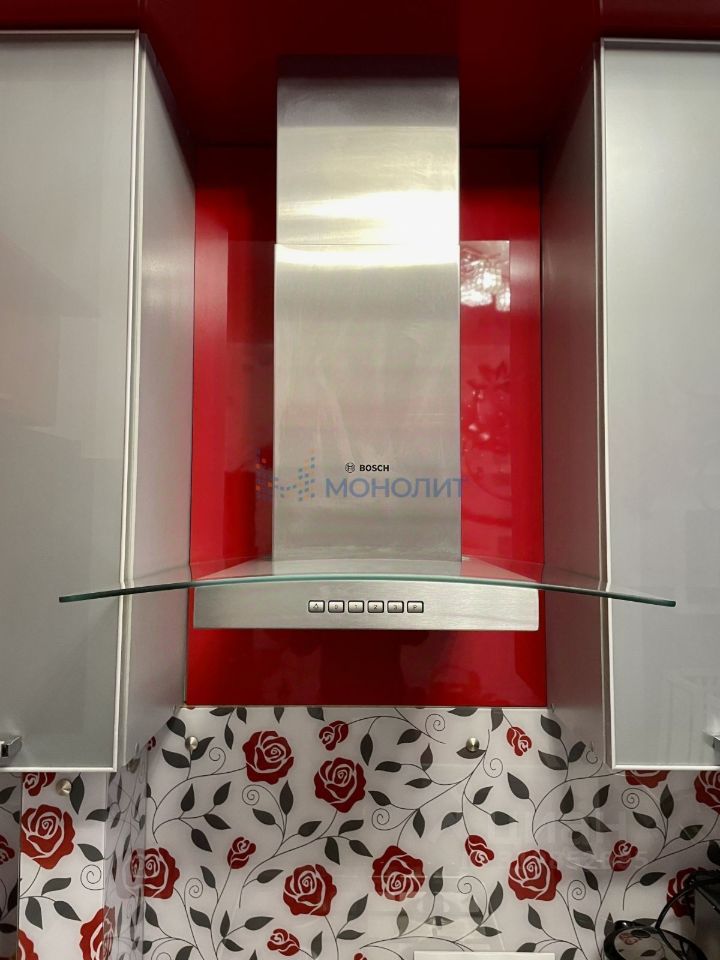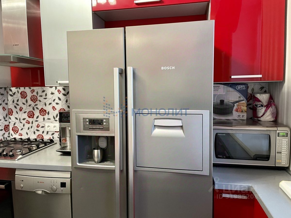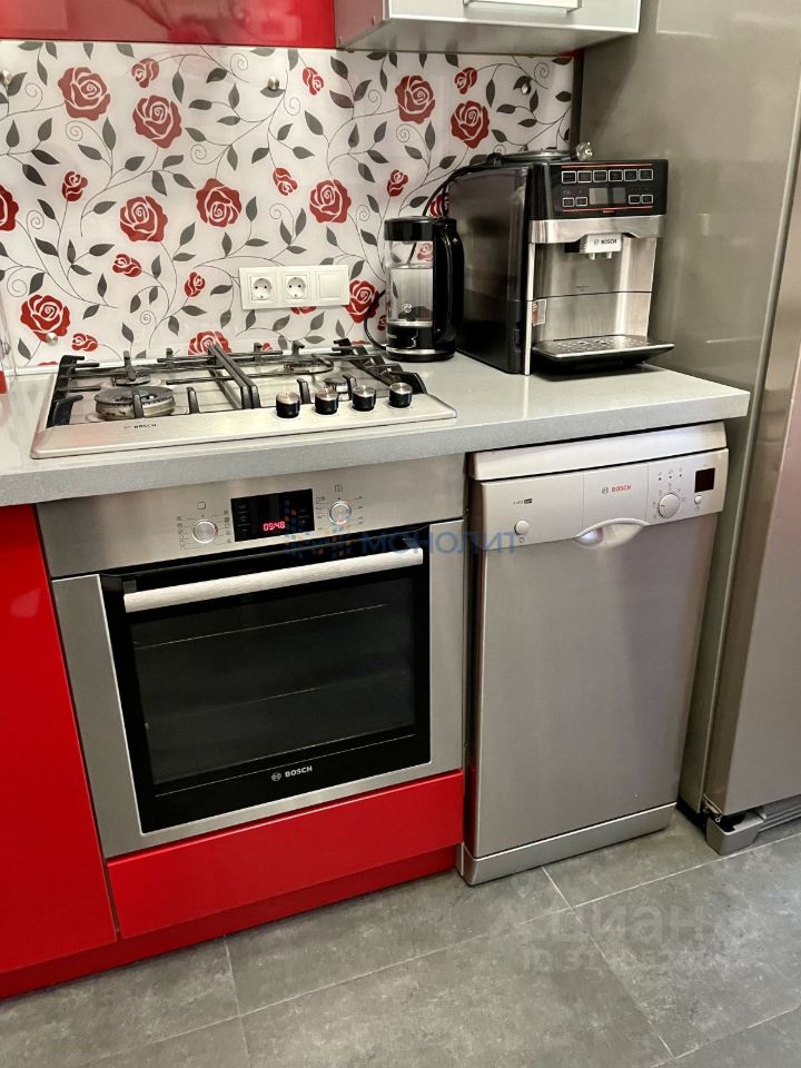 На кухне бытовая техника надежного производителя Bosh (сборка Германия): двухкамерный холодильник, духовой шкаф, варочная поверхность, вытяжка и посудомоечная машина.