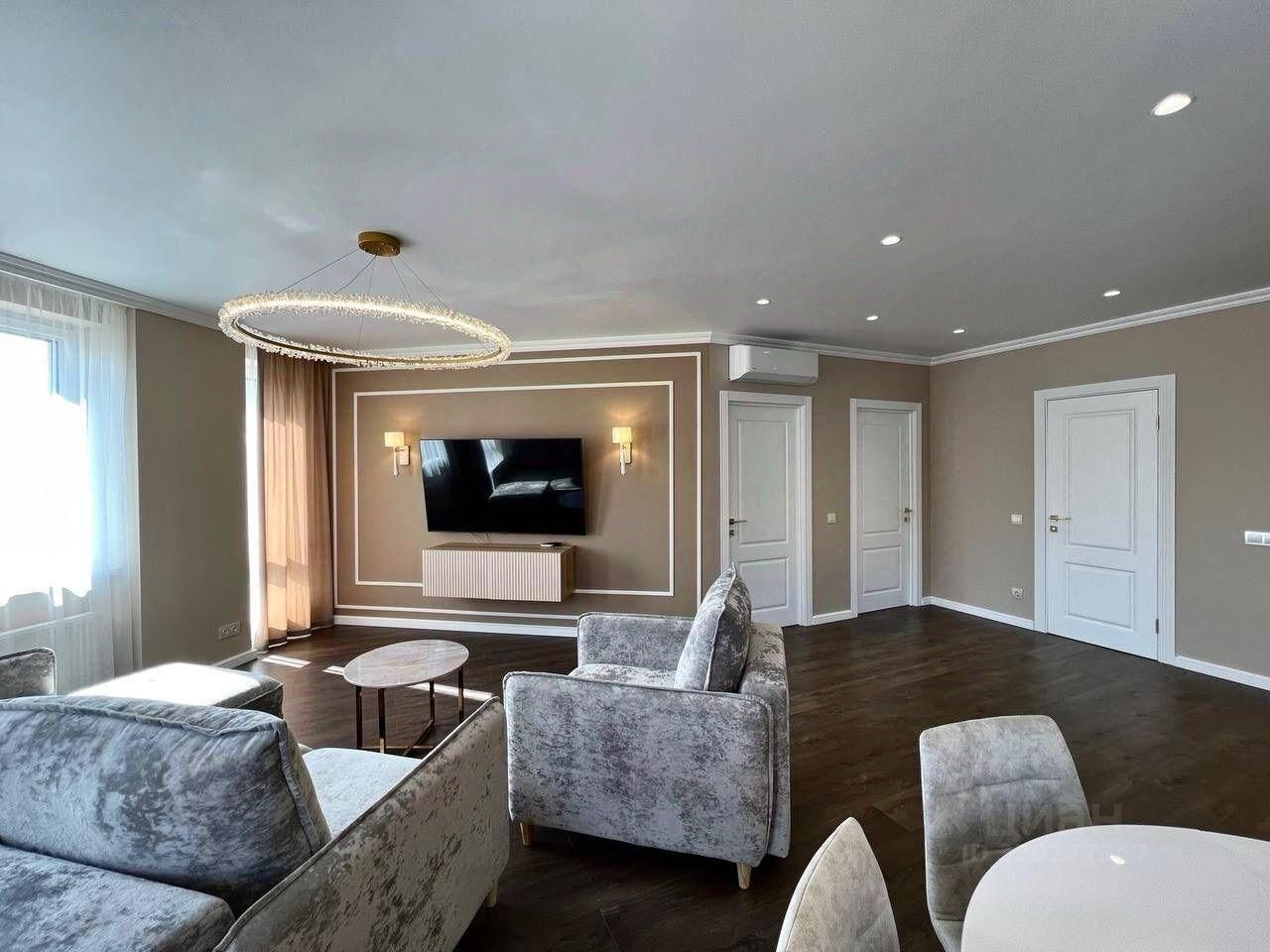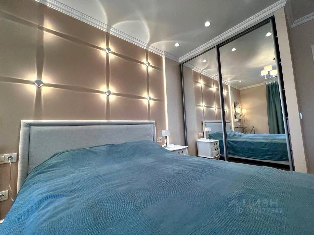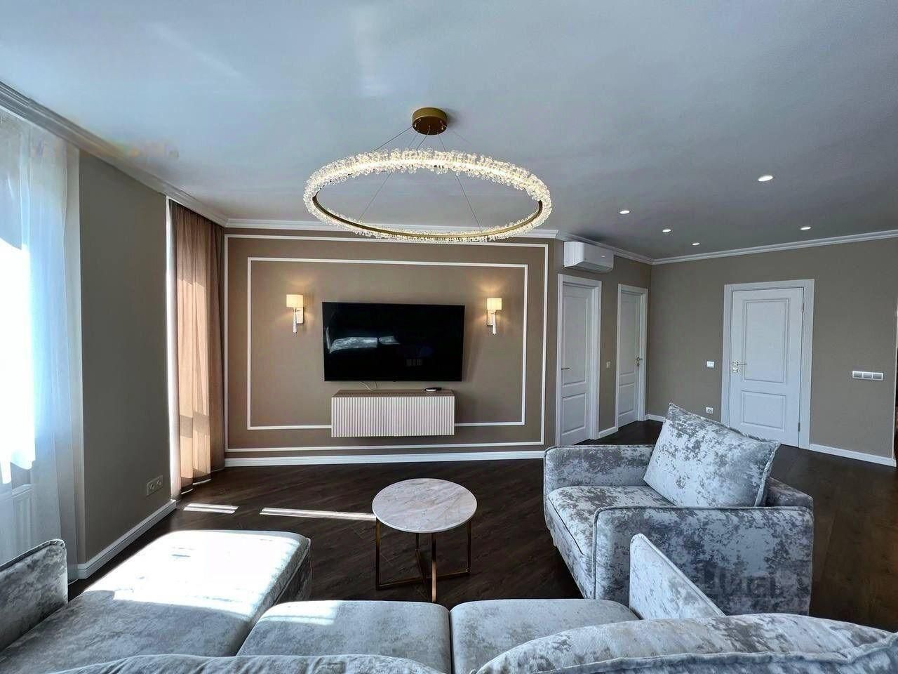 В квартире две изолированные спальни с гардеробными комнатами, большая просторная кухня-гостиная, 2 санузла.