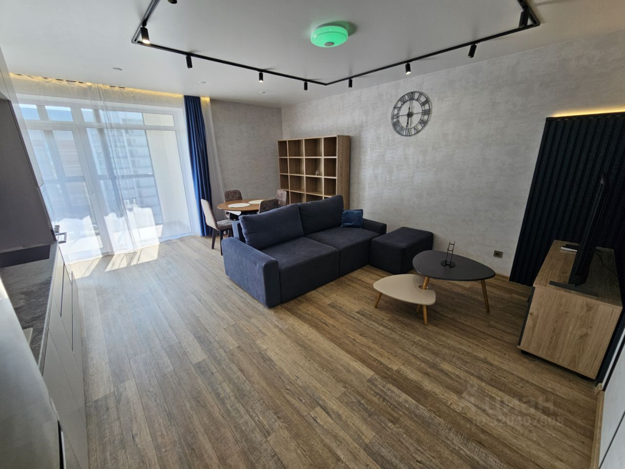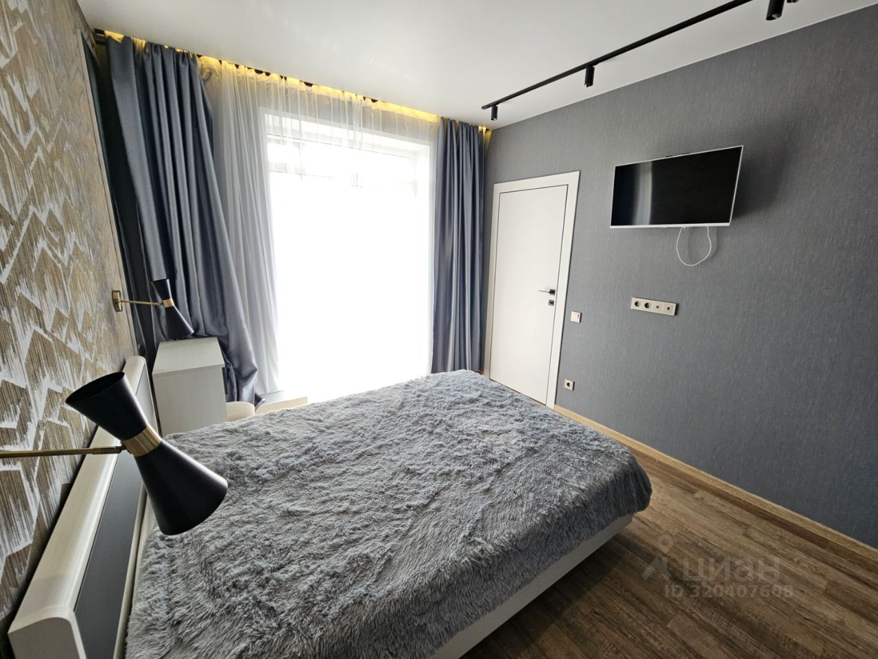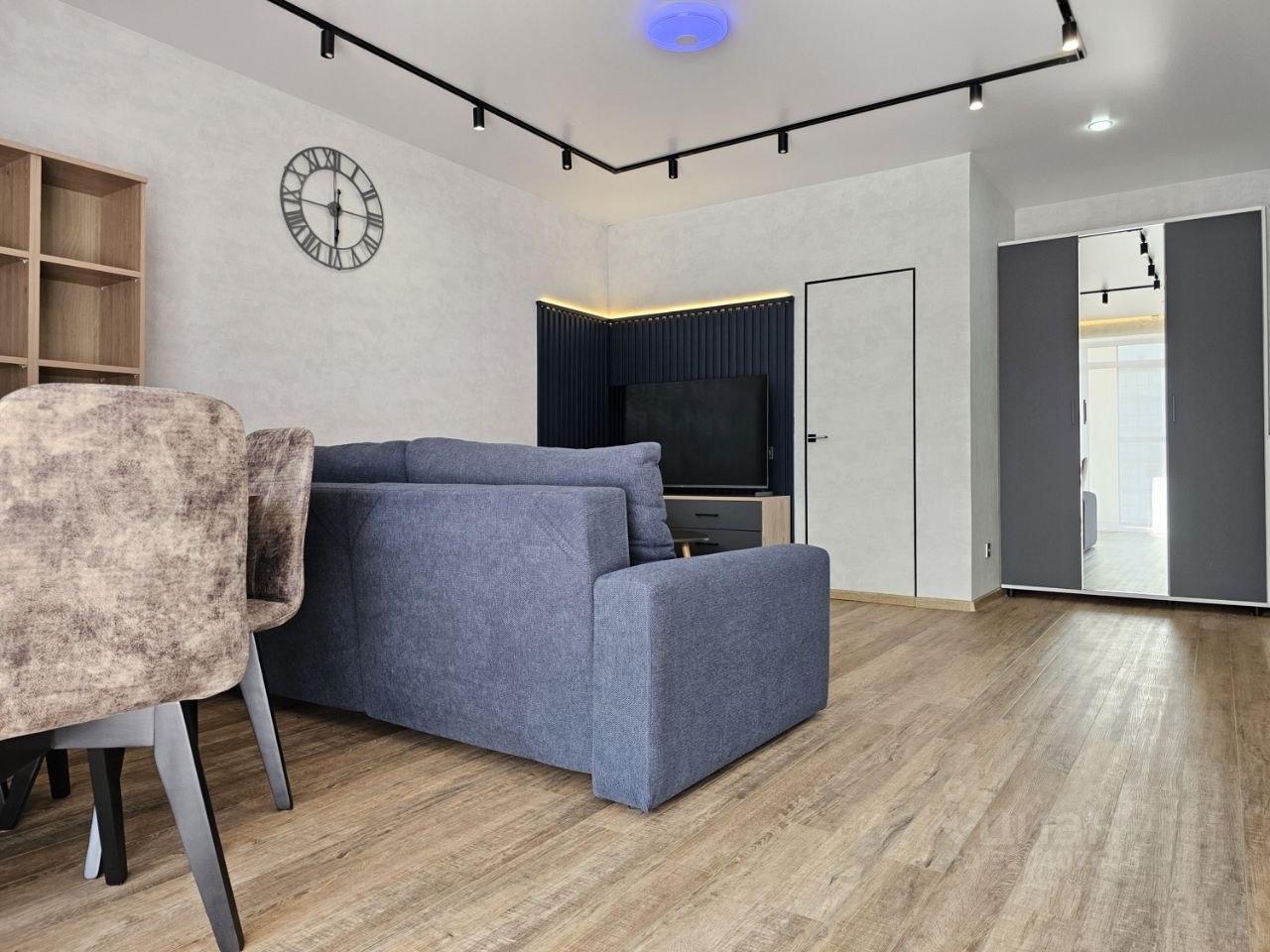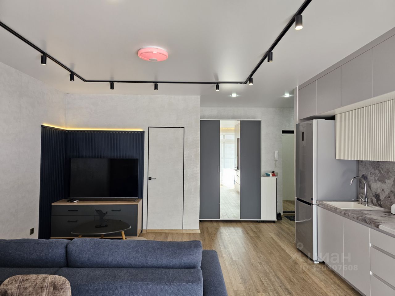 Квартира имеет отдельную спальню комнату с выходом на застекленную панорамную лоджию и кухню-гостиную, есть также отдельная гардеробная комната и совмещенный санузел. В кухне-гостиной установлен большой жк Смарт-ТВ, в спальне тоже есть телевизор. Также для комфортного проживания установлены кондиционер и посудомоечная машина.