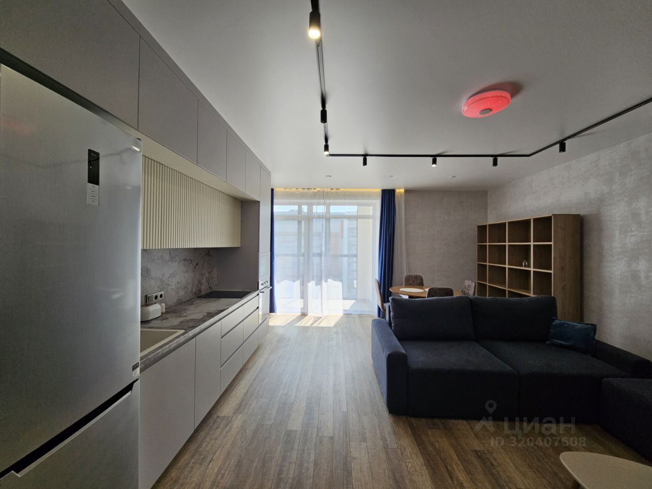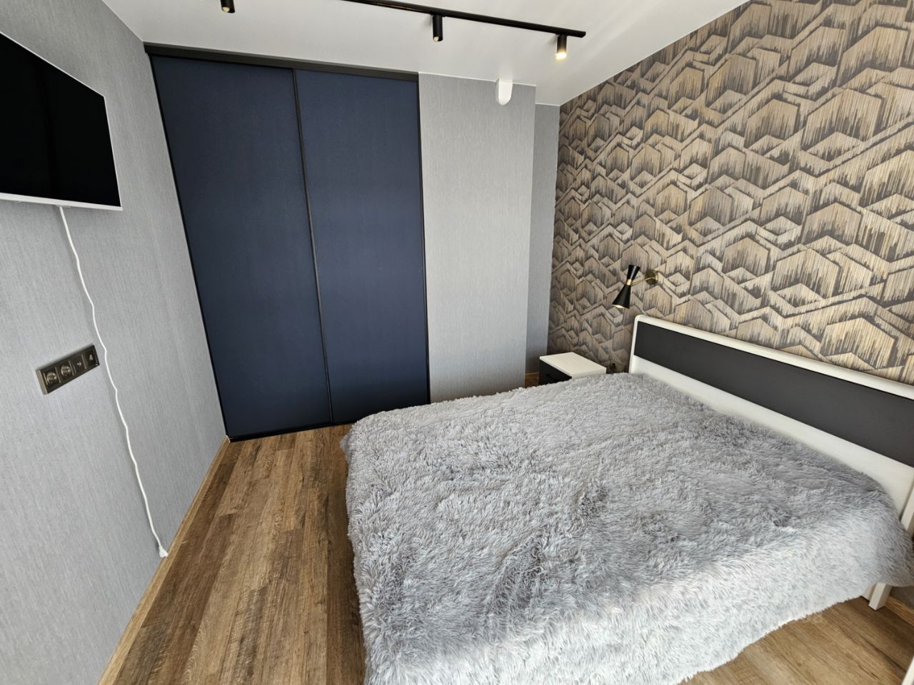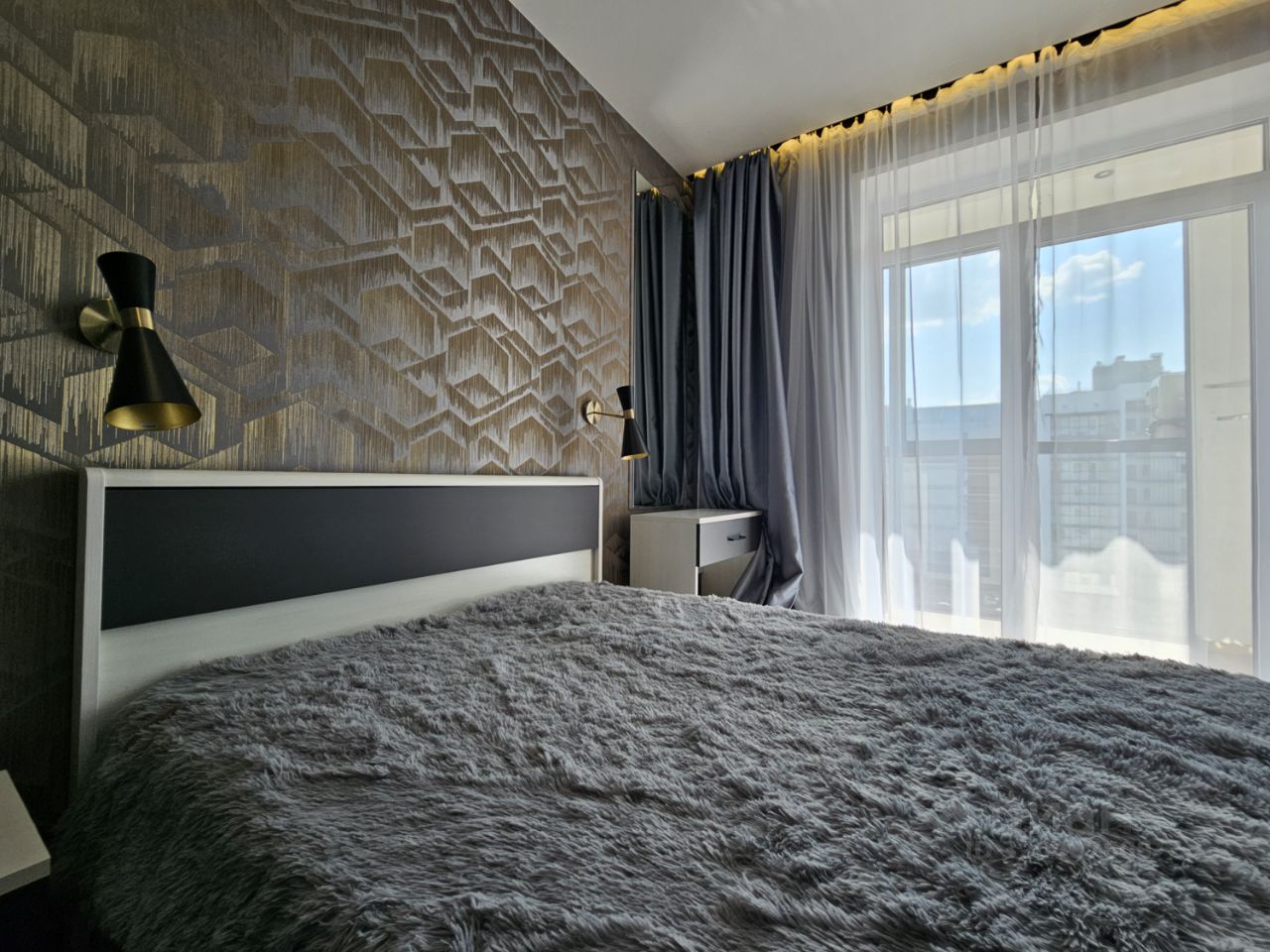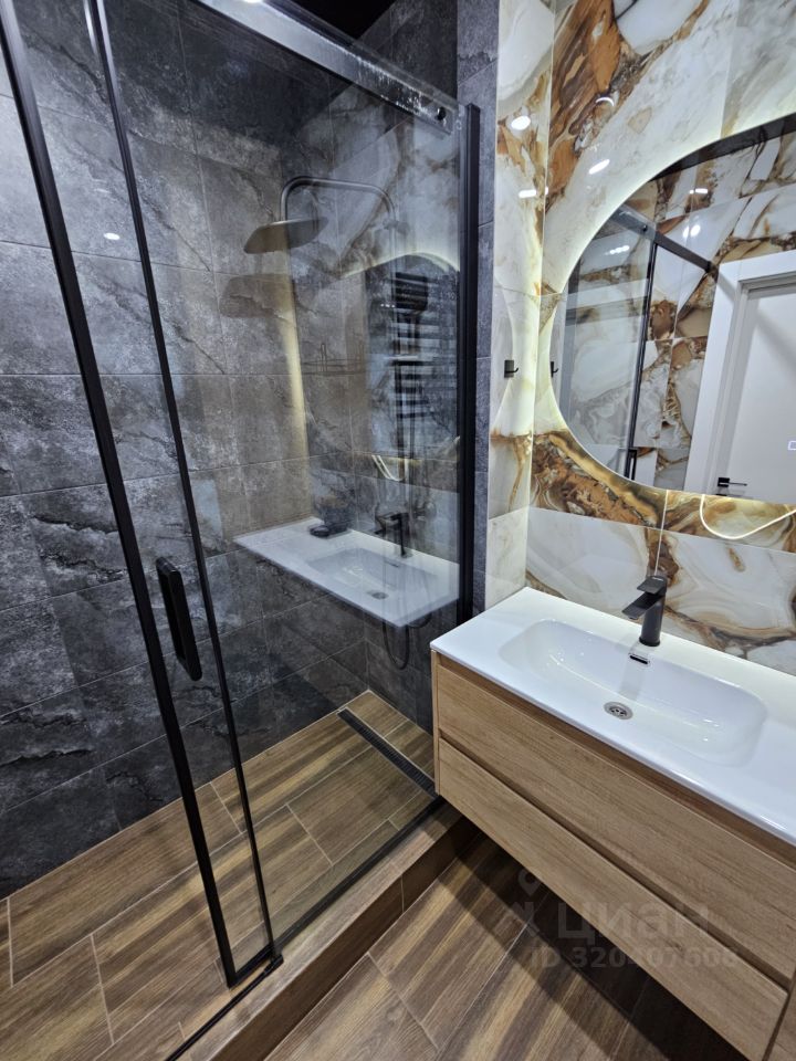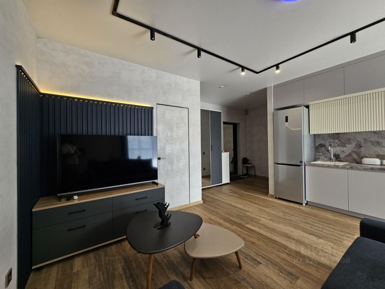 Квартира имеет отдельную спальню комнату с выходом на застекленную панорамную лоджию и кухню-гостиную, есть также отдельная гардеробная комната и совмещенный санузел. В кухне-гостиной установлен большой жк Смарт-ТВ, в спальне тоже есть телевизор. Также для комфортного проживания установлены кондиционер и посудомоечная машина.
