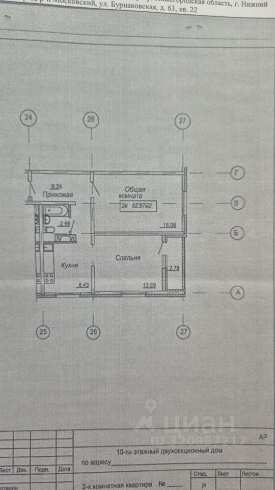 Продается уютная двухкомнатная квартира в Нижнем Новгороде на Бурнаковской улице, 63. Общая площадь составляет 53 кв. м, жилая - 32 кв. м, кухня - 8.4 кв. м. Квартира расположена на 4 этаже 10-этажного монолитного дома с высотой потолков 2.65 метра. Дом оборудован пассажирским лифтом и наземной парковкой.