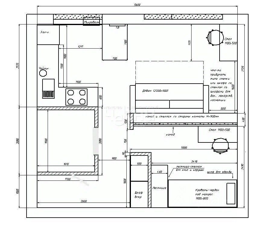 Просторная кухня-гостиная, уютная комната, учебная зона. Идеально подходит для семьи или молодых людей, студентов,