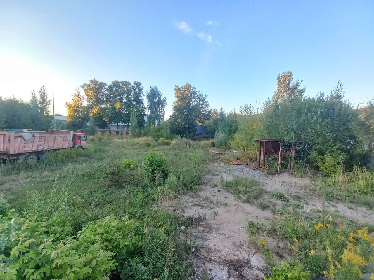 На территории площадки нежилое здание 388 кв.м. В данный момент площадка используется под стоянку строительной техники, для нового арендатора площадка будет расчищена.