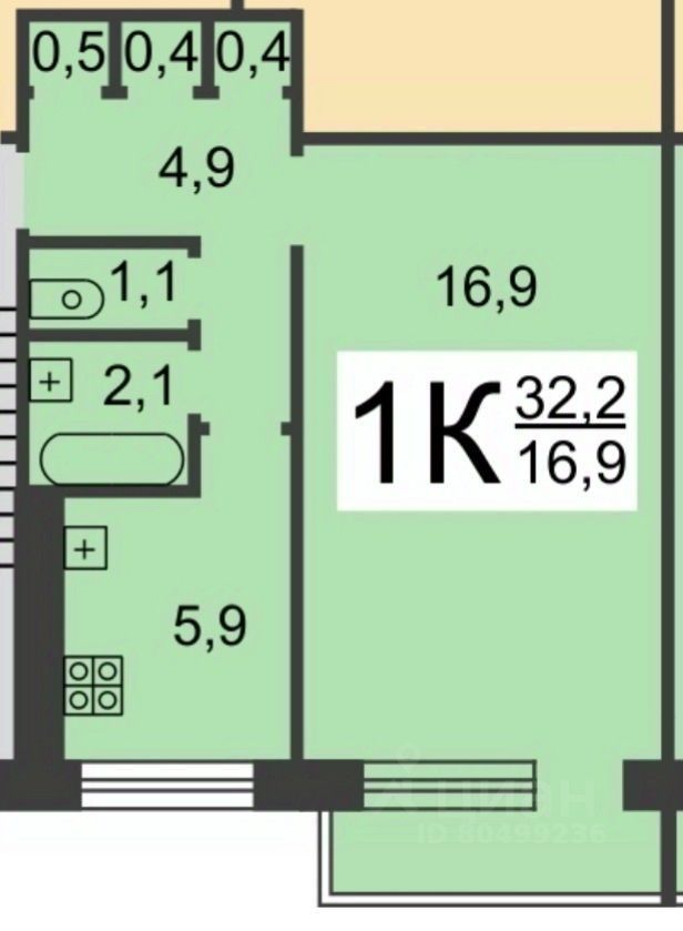 Продаю 1-комнатную квартиру, подготовленную к ремонту.