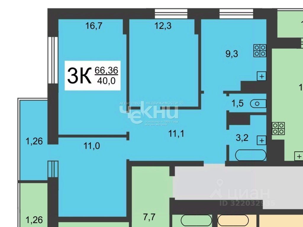 В продаже уютная трехкомнатная квартира в ЖК Цветы на Цветочной: