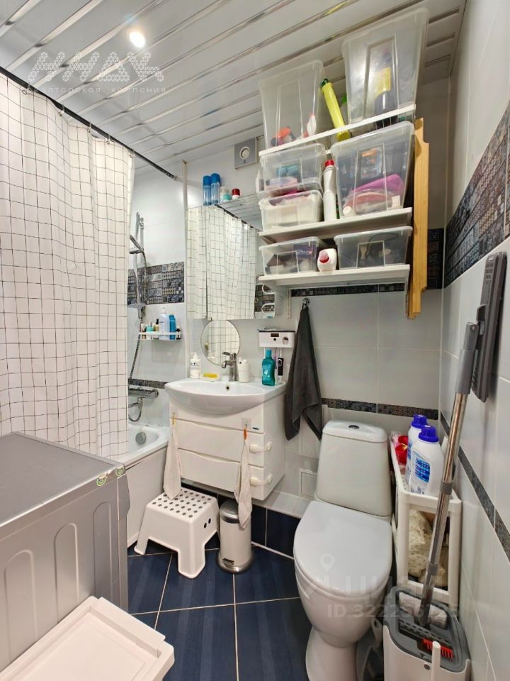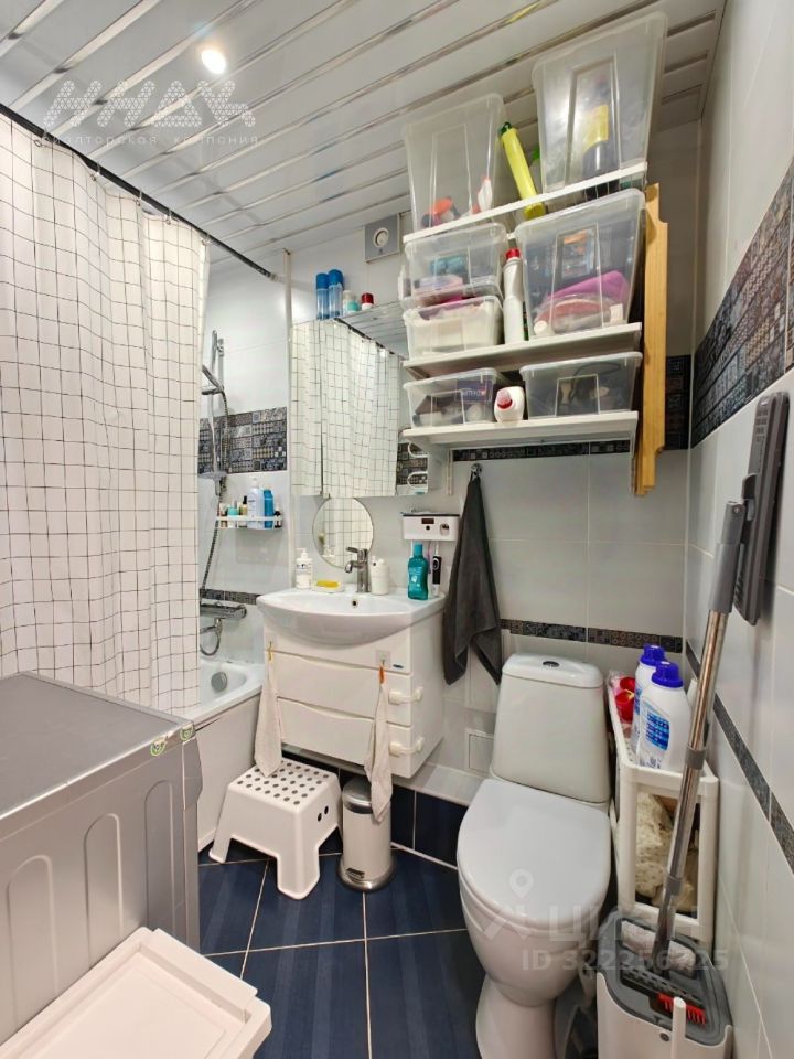 * Грамотная узаконенная перепланировка: совмещен санузел, благодаря чему организовано пространство полноценного санузла, включающее ванную, раковину с тумбой, стиральную машину, систему хранения.