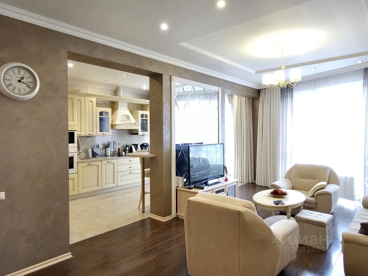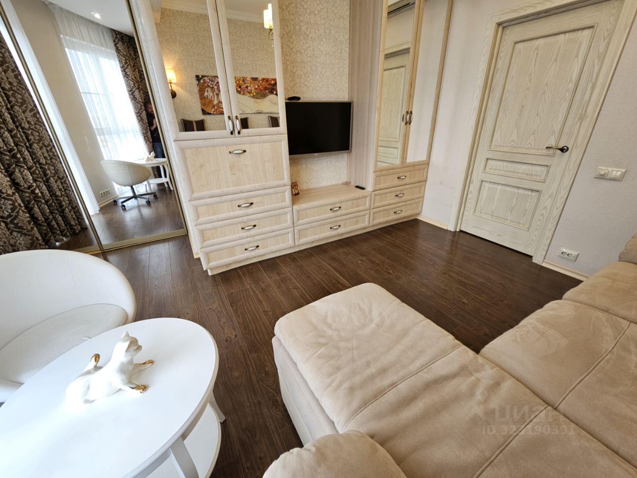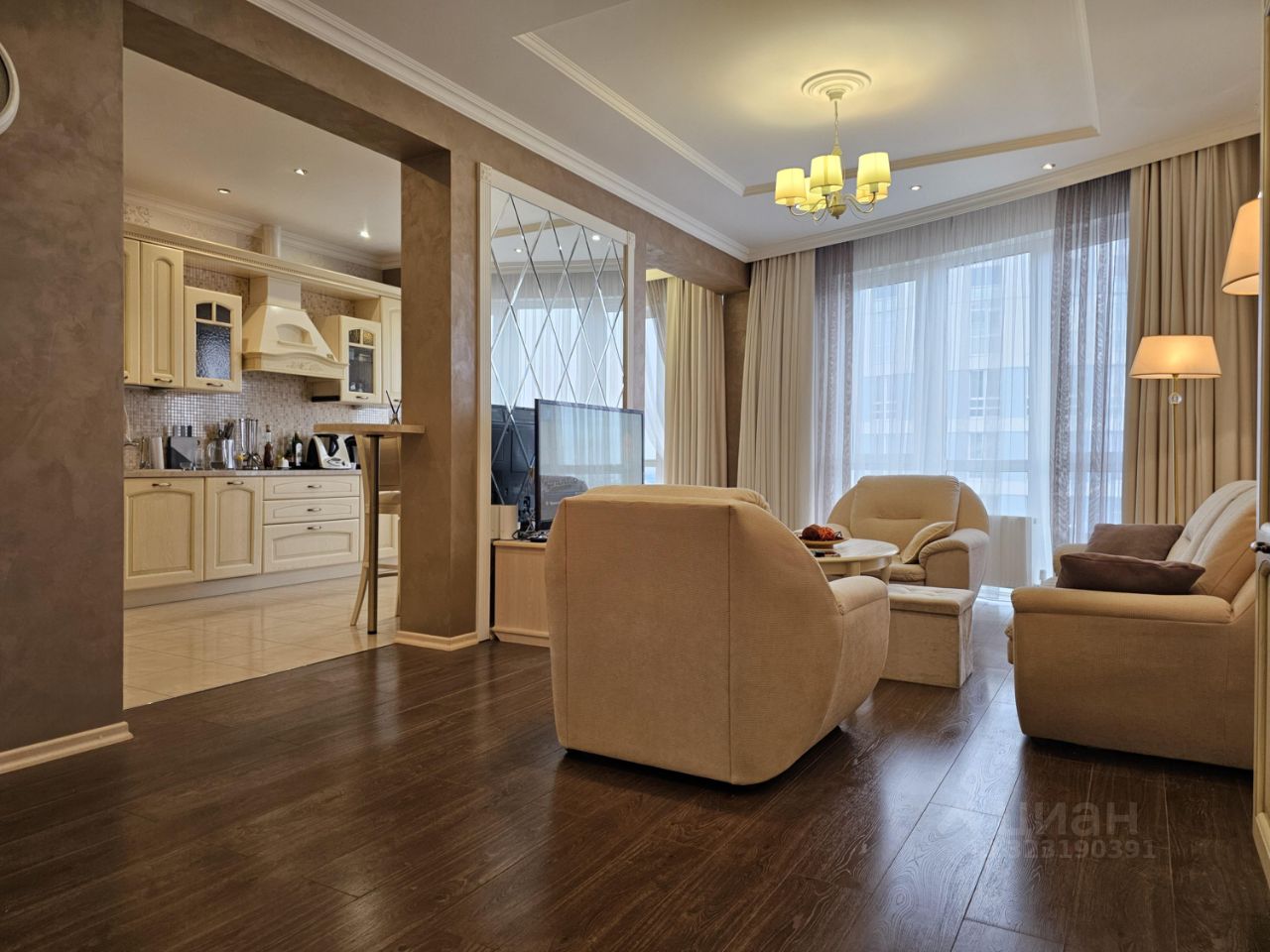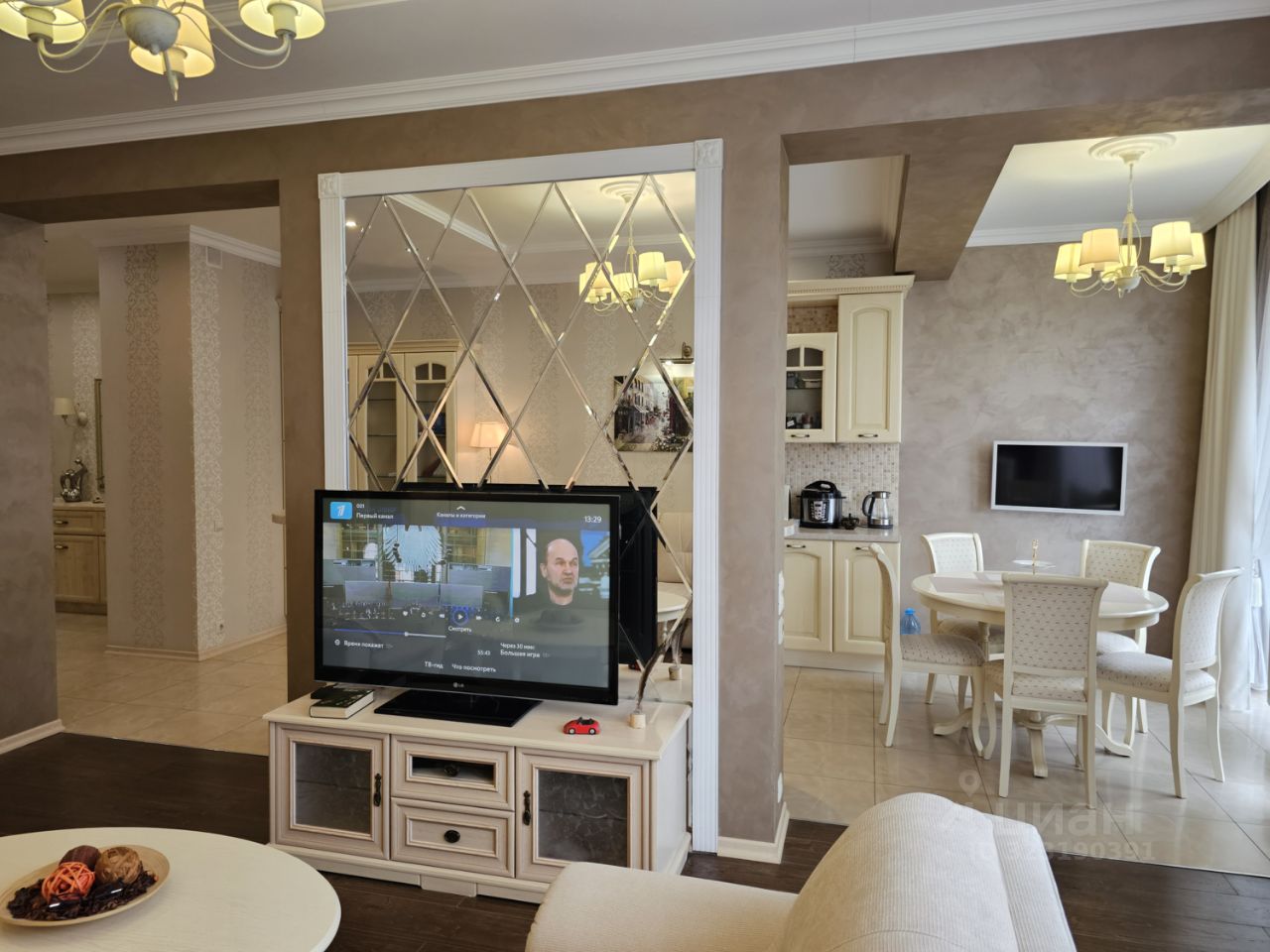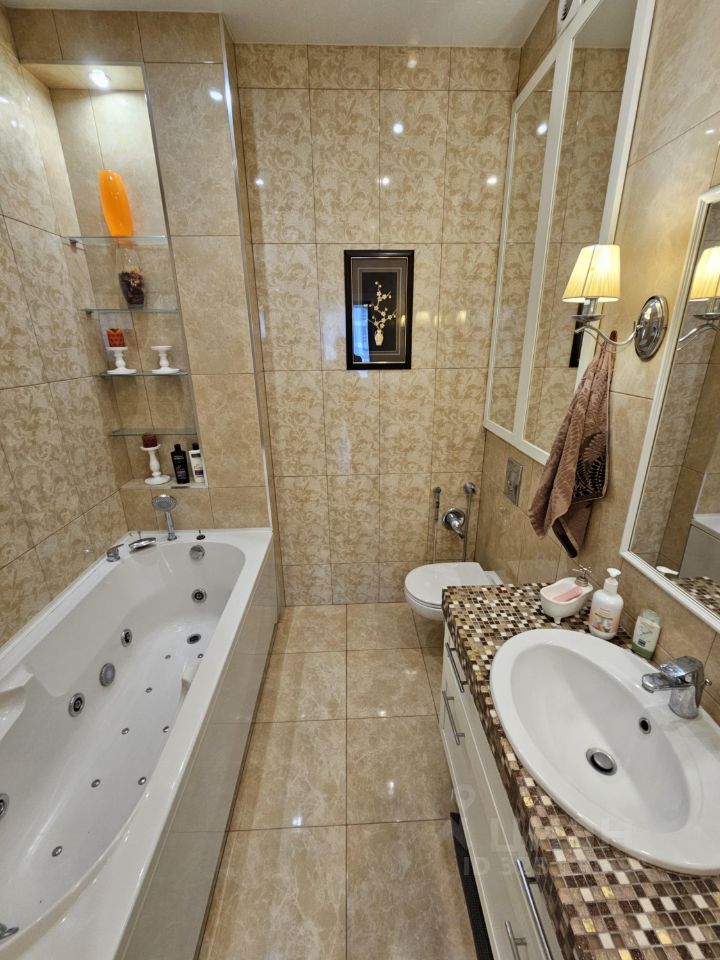 Квартира имеем следующую планировку: просторная объединенная кухня-столовая-гостиная с видом на реку, отдельная взрослая спальня, отдельная детская комната (либо кабинет) и 2 полноценных санузла (в одном из них ванна, в другом душевая кабина).