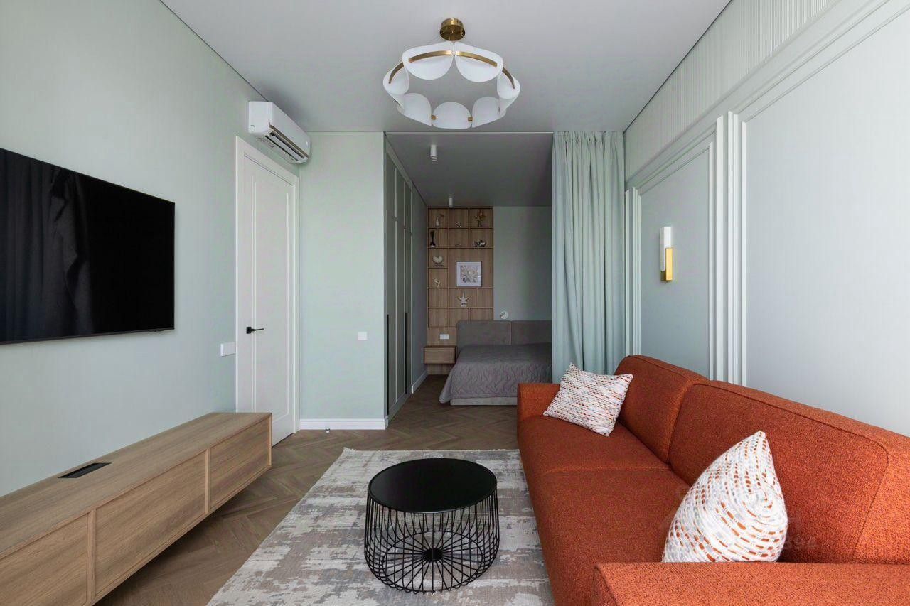 Ремонт сделан качественными материалами по индивидуальному дизайн-проекту. Приятная цветовая гамма, которая в хмурые, серые, осенние дни улучшает настроение. Все продумано для максимального комфорта.