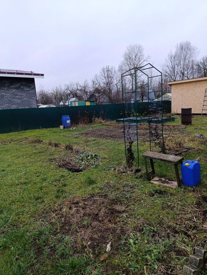 Небольшой домик, состоящий из одной комнаты и кухни. Начато строительство бани - поставлен каркас, крыша, без внутренней отделки. Туалет, сарай, беседка. Участок ровный, скважина с питьевой водой. Есть место для парковки автомобиля. Груша, яблоня, смородина, цветы. По всем линиям имеется видеонаблюдение, сторож.