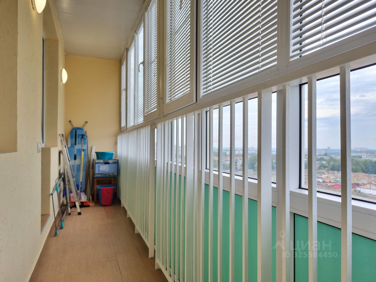 По всей ширине квартиры застекленная лоджия, окна выходят во двор, где есть открытая парковка.