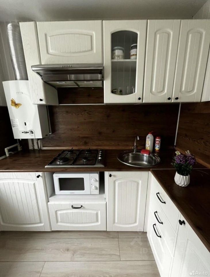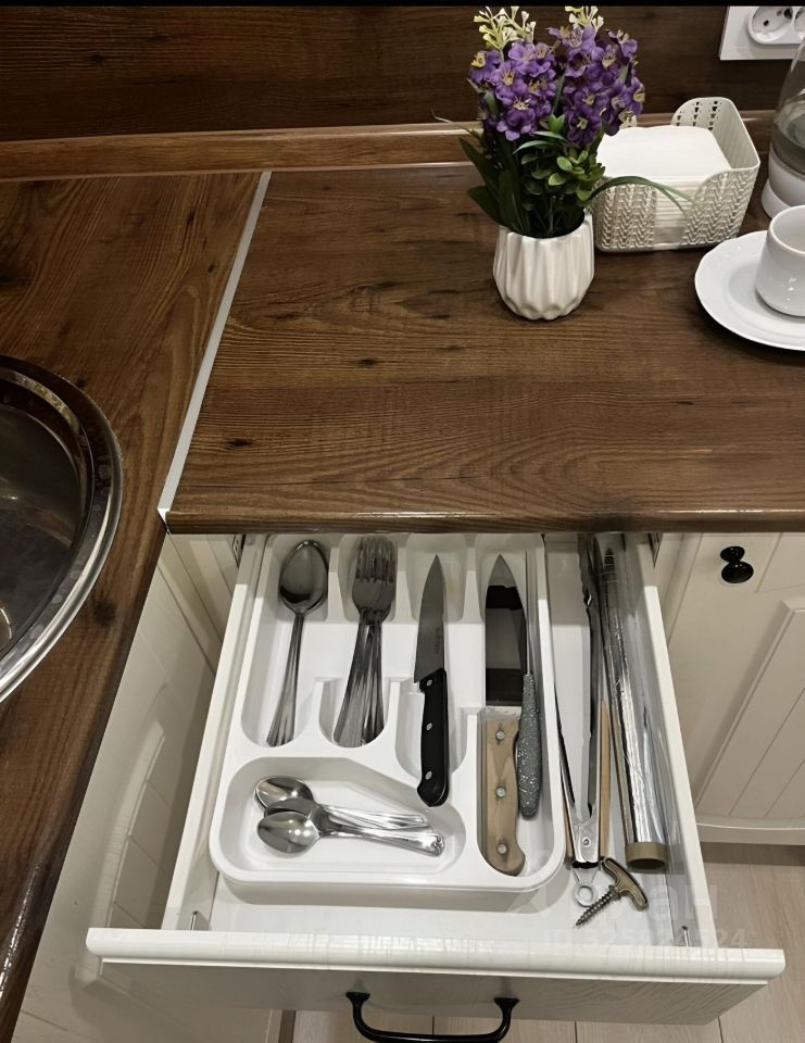 В квартире сделан дизайнерский ремонт, что создает комфортную и стильную атмосферу. Пространство обставлено необходимой мебелью как на кухне, так и в комнате. В наличии вся необходимая техника: холодильник, телевизор и стиральная машина. Ванная комната оборудована ванной, санузел совмещенный.
